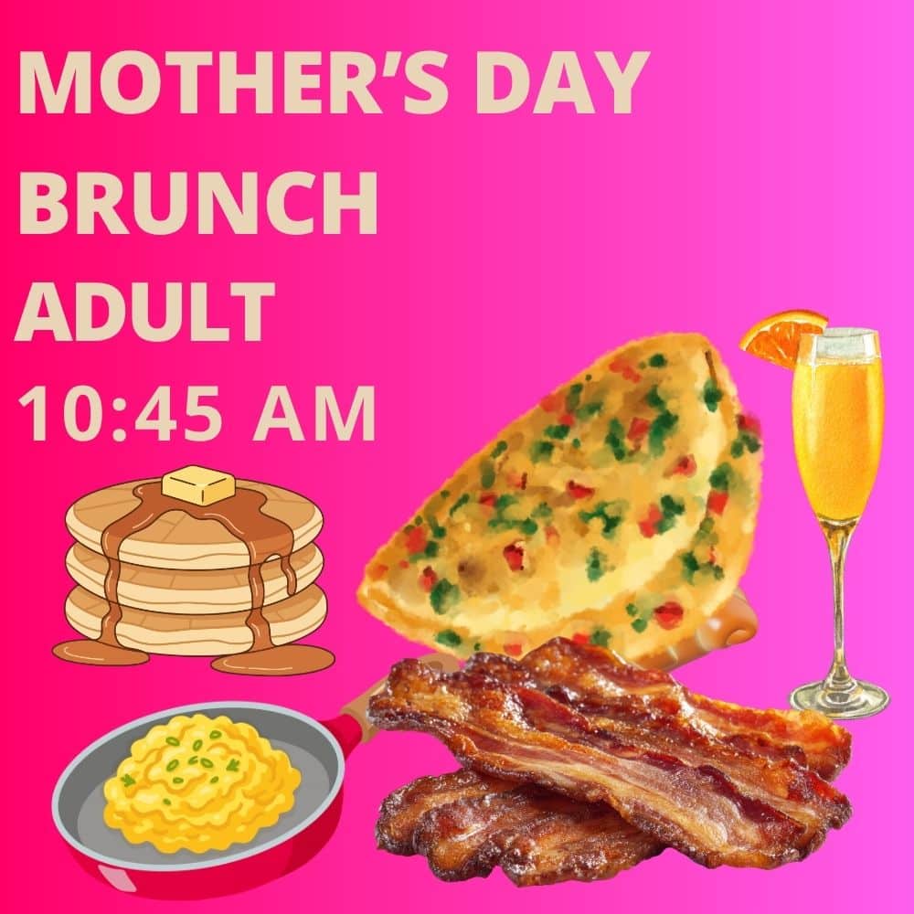 Scrambled eggs, Blueberry pancakes, Hash browns, Bacon, Sausage