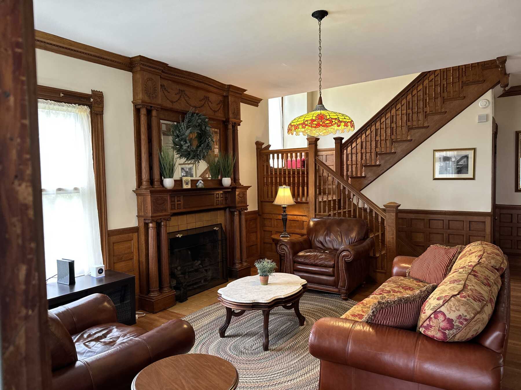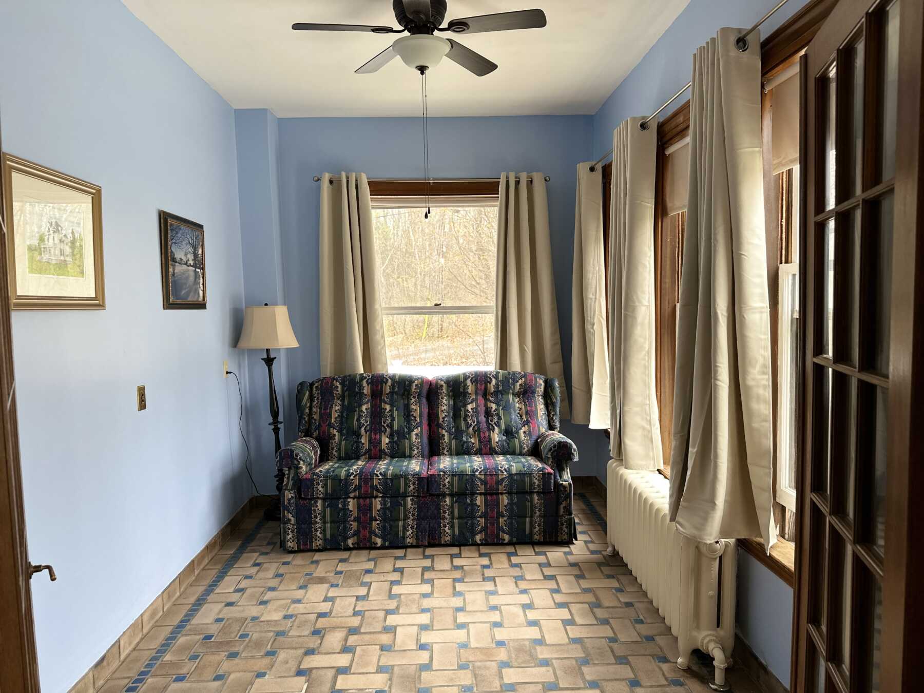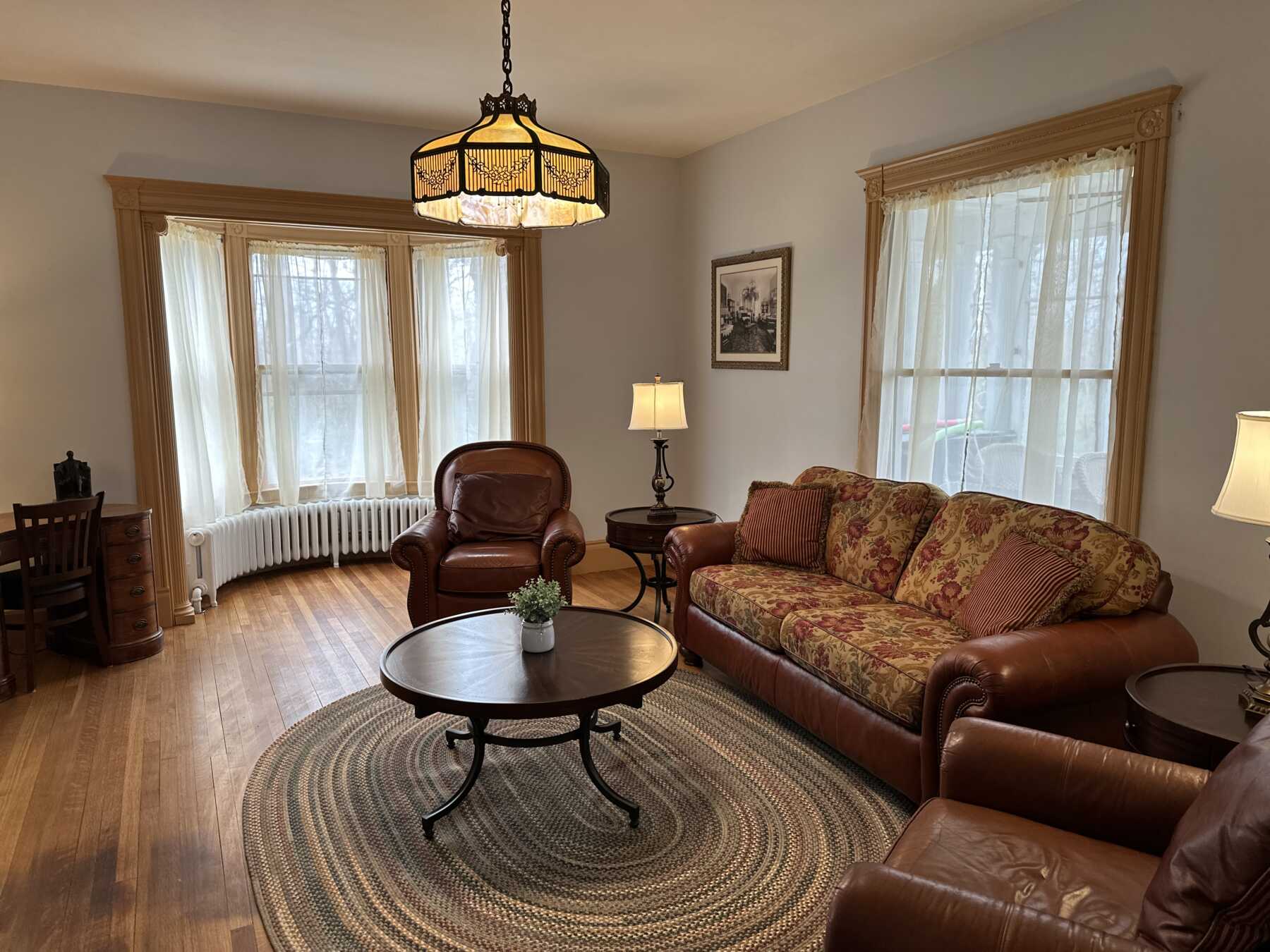 The first floor has huge porch over looking the grounds. 2 living rooms, formal dining room, library with sofa bed, full kitchen and 1/2 bath.