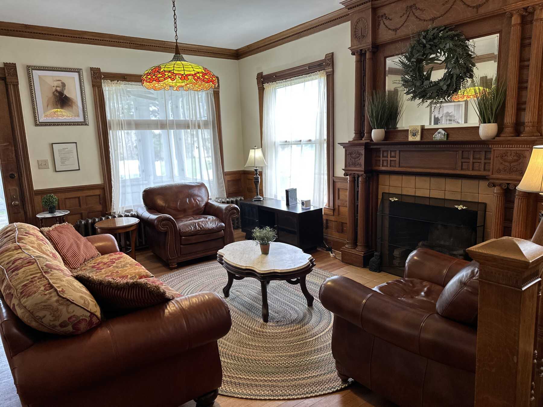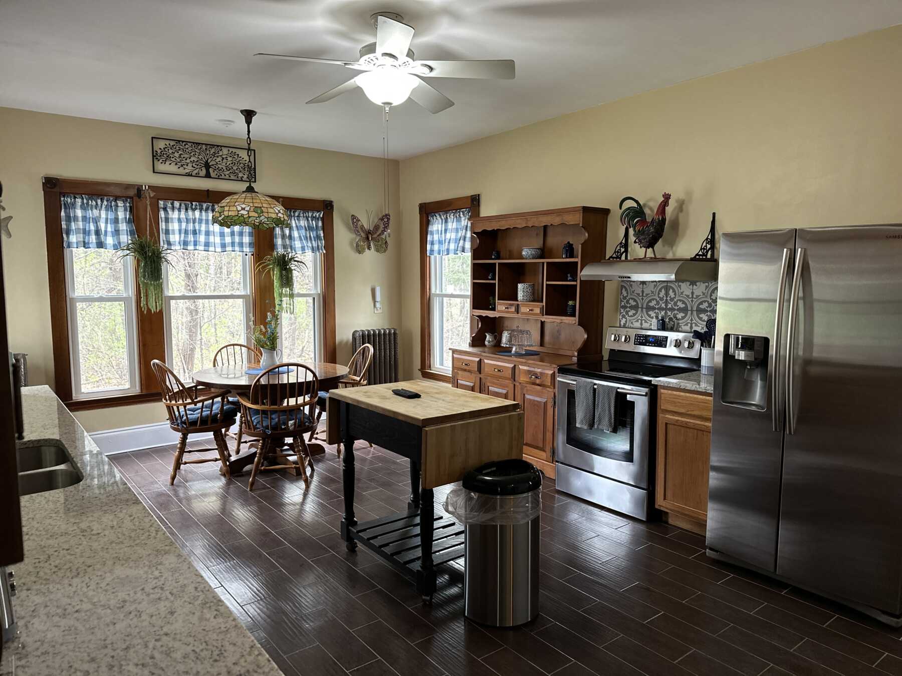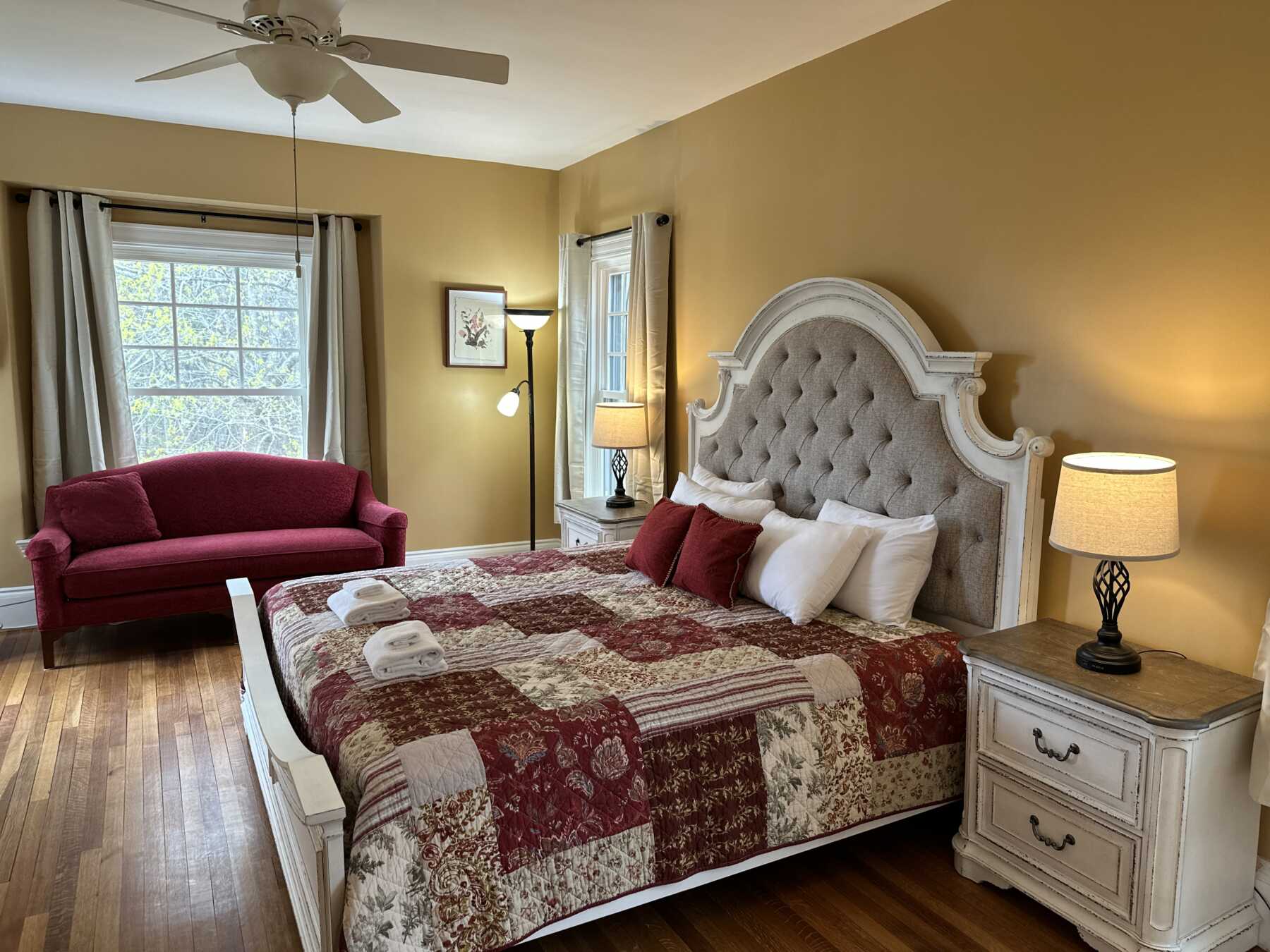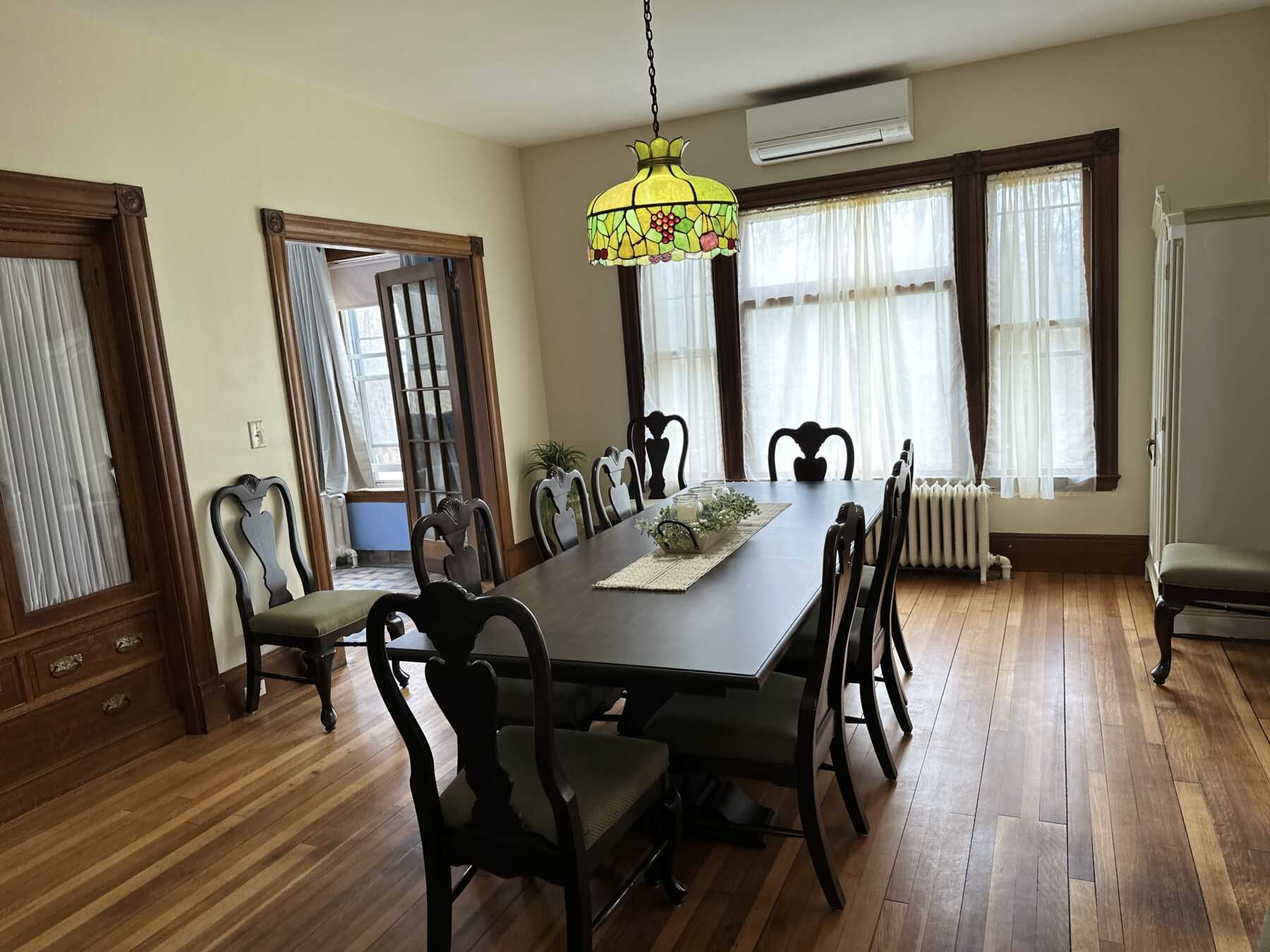 The first floor has huge porch over looking the grounds. 2 living rooms, formal dining room, library with sofa bed, full kitchen and 1/2 bath.