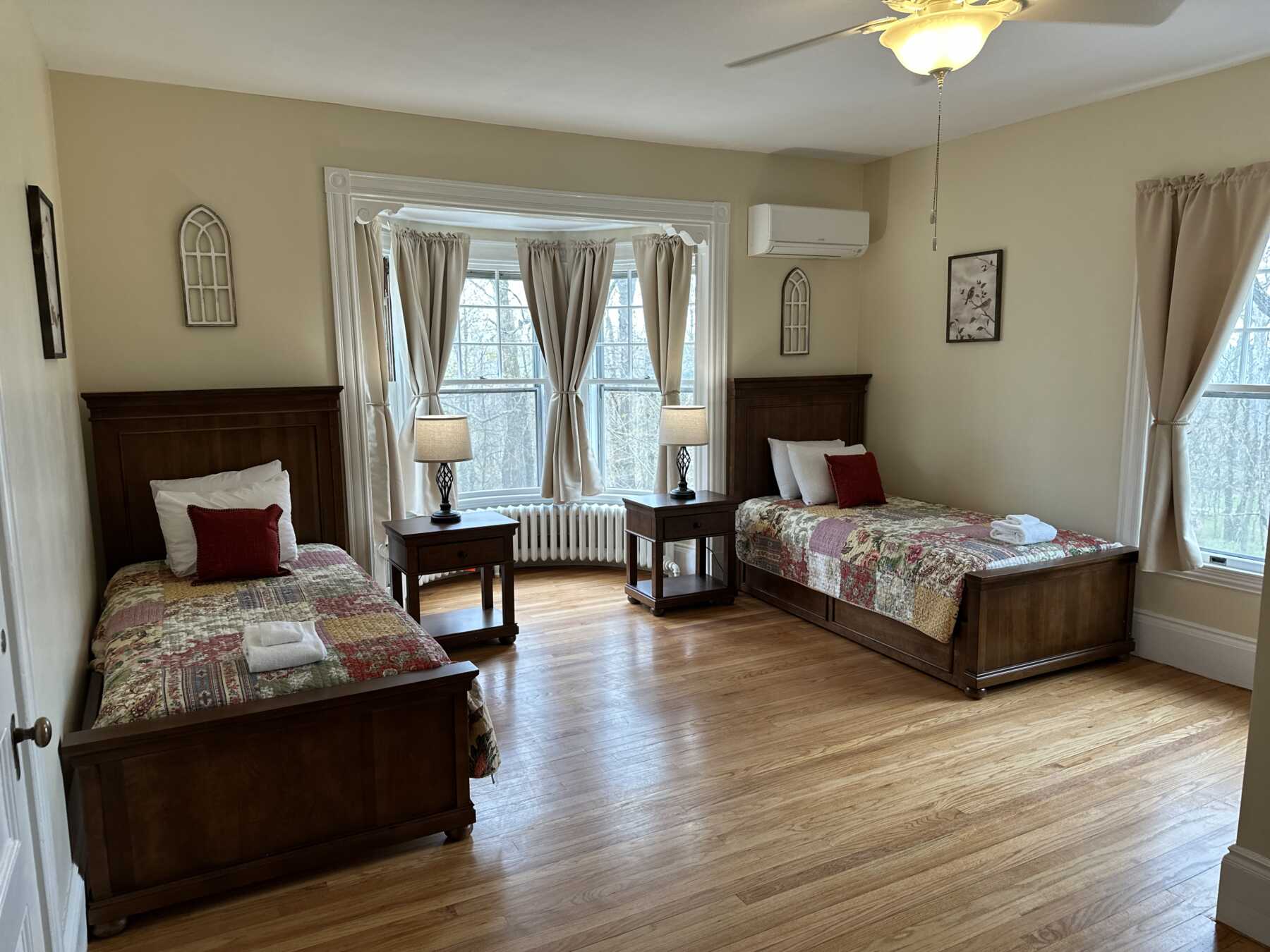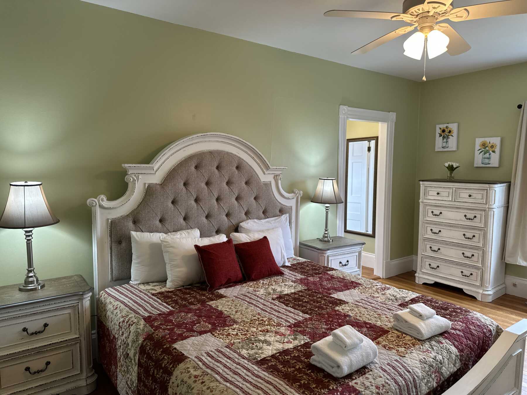 2nd floor has 2 bedrooms (King) with private full bathrooms and 2 more bedrooms (one has a quuen and one has a trundle with an additional twin) with a shared bathroom.