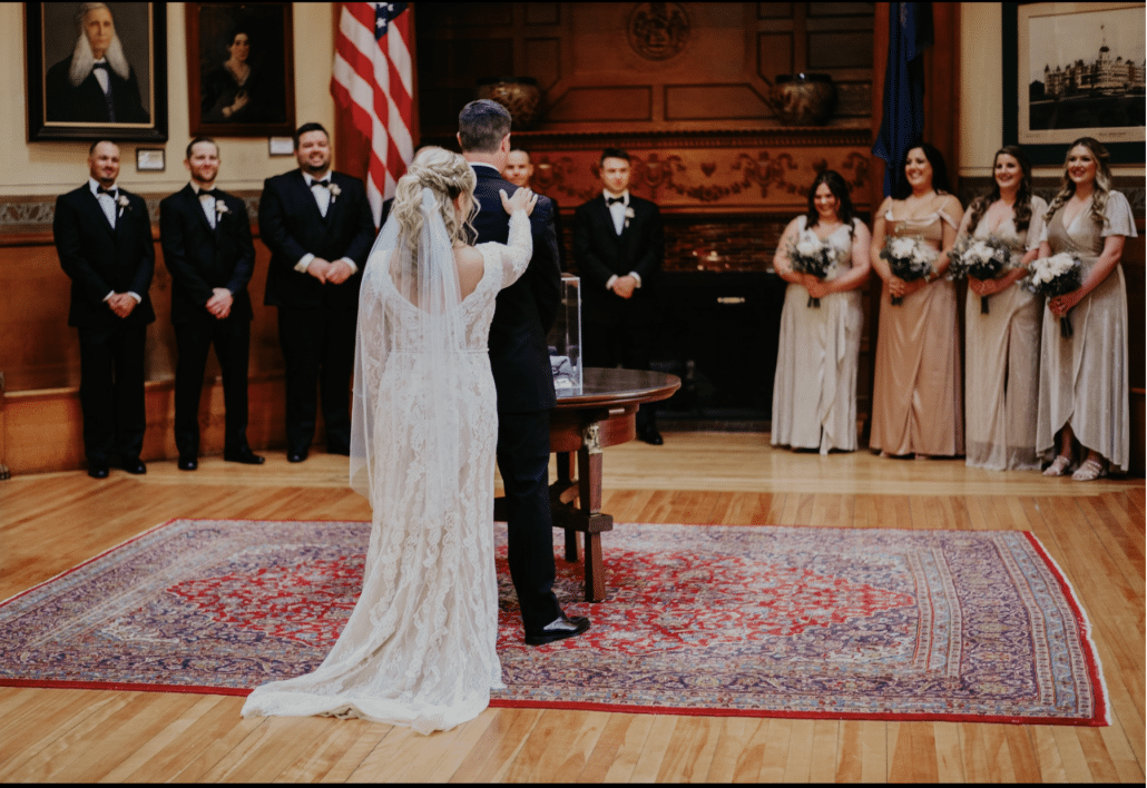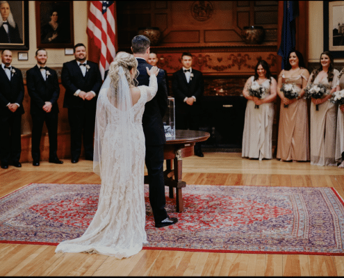 In this building, there is a bride’s room to be used one hour prior to your ceremony. You may have pictures taken there, limited to the first floor. Please use your reserved hotel room for dressing and only use the bride’s room for last minute touches as this building is open to the general public.